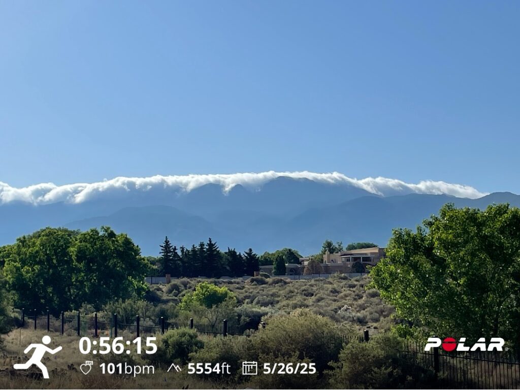 Even though it has been since the beginning of the pandemic, I still miss the 20 years that I was running inside the Albuquerque Academy – either the perimeter trails or on the cross country course (that you can see part of in the photo).