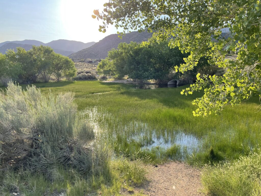 A figure eight in the foothills passing under Tramway and heading to the man-made pond, and then looping back on other trails that criss-crossed in the center.
