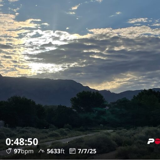 I ran this morning and saw something that I’ve never seen in Albuquerque. We had a lot of remnant moisture from Tropical Storm Raymond and all of the grasses and natural vegetation had water droplets clinging to it that glinted in the sun. The photo doesn’t do it justice. When I got home, I did half of Power of 4 Day 2 for an hour of working out. An hour a day keeps the doctor away!