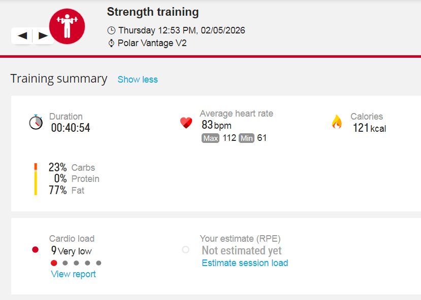 My training log for the week of February 2nd, 2026, has six runs and one strength workout day, with a minimum of a 2-mile run.